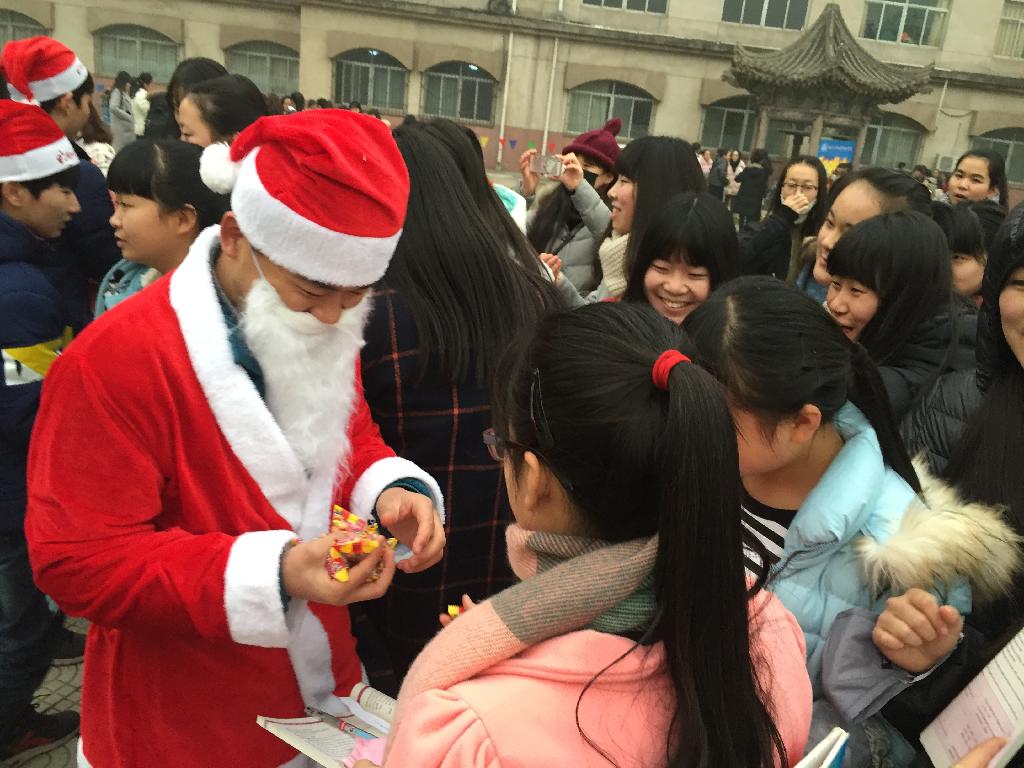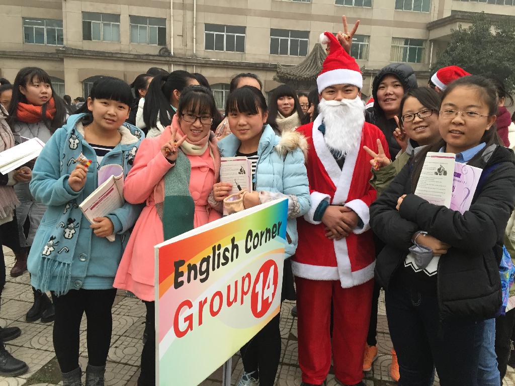 本期英语角活动的主题为“Christmas”,分为“Word Reading”、“Proverb Discussion”、“Dialogue”、“Free Talk”、“Answering Questions”五个环节进行。活动中,圣诞老人现场向师生派送圣诞小礼物,与参加活动的师生一起学唱了“Jingle Bells”和“We Wish You A Merry Christmas”两首圣诞英文歌曲。活动接近尾声时,员工们纷纷把自己写有新年愿望的编码卡挂在圣诞树上祈福,活动在欢快的氛围中结束。