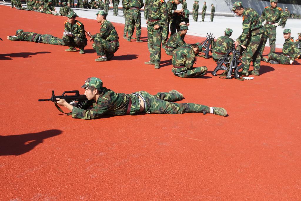 烈日下,操场中,方阵间,青春风采完美展现。站军姿,练转身,走正步,整队形,练打靶,钢铁纪律牢记心头。军训不仅给新生留下了晒得黝黑的皮肤,而且也使他们少了几分娇气,多了一些坚强;少了一份依赖,多了一份自立;少了一份怨天尤人,多了一份勇往直前;少了几分我行我素,多了一些团结合作。军训场上,巾帼须眉,尽显英姿,风华正茂,气势如虹,阳光下绽放着最美丽的光彩!