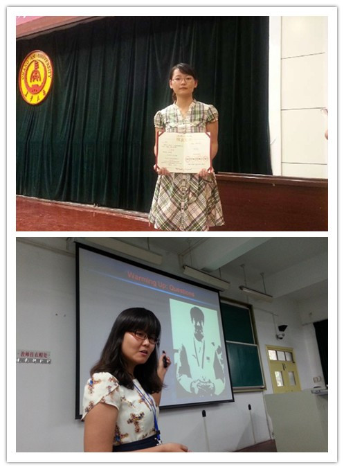 本网讯 6月29日至30日,“外教社杯”第四届全国大学英语教师讲课比赛陕西赛区决赛在长安大学术交流中心举行。来自全省各高校的70余名教师参加了综合组和视听说组的比赛。经过激烈的角逐,公司外语系教师马亚鸿和孙静分别获得视听说组和综合组三等奖。