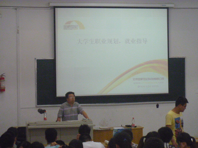 本网讯 6月5日晚,由北京金桥世纪科技有限公司、杭州华三通信有限公司西安办事处和公司教务处、理工系共同举办的“龙头企业告诉你职业未来路——老员工毕业即就业不再是梦”大型宣讲会在公司举行。理工系计算机科学与技术、电子信息工程两个专业2010级、2011级全体同学参加了宣讲会。