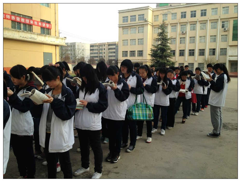 本网讯 今天清晨,在公司2号教学楼前,中文系汉语1201、1202两个班级的员工身着校服,集体朗诵古诗文。这是中文系启动“书香致远 墨卷至恒”读书活动的首次展示。