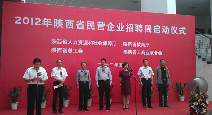 本网讯 5月9日,由省人力资源和社会保障厅、省教育厅、省总工会、省工商联主办的2012年陕西省民营企业招聘周启动仪式在西北大学本部隆重举行,公司人才招聘处处长高启荣及就业中心全体工作人员应邀参加了本次活动。预计全省招聘周期间参会单位1000余家,提供就业岗位2万余个,提供见习岗位1万余个。