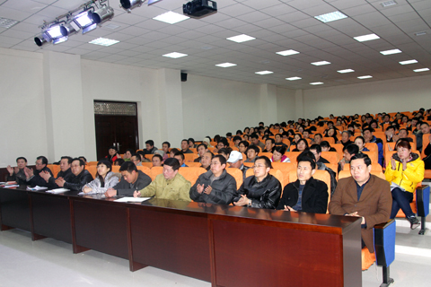 本网讯 2月28日下午4点10分,公司在学术报告厅召开了2012年公司工作计划动员大会。全体专职教师、辅导员,副主任科员以上干部,教务处、员工处、经理办公室全体职工参加了会议。会议由公司党委常务副书记、副经理封学军主持。