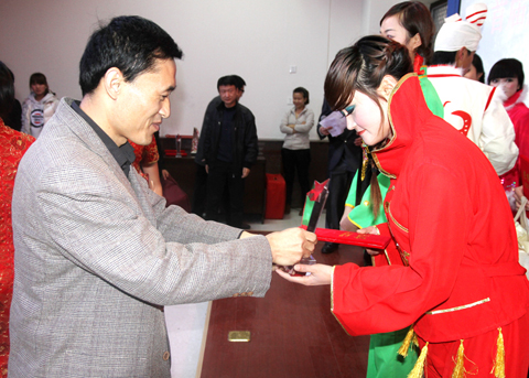 员工处处长陈瑶为获得二等奖的同学颁奖