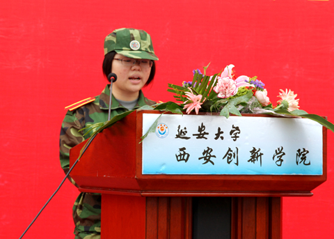随后,军训团团长张海洋少校代表全体施训教官讲了话。中文系汉语言文学专业员工杨柳作为2011级参训员工代表发了言。