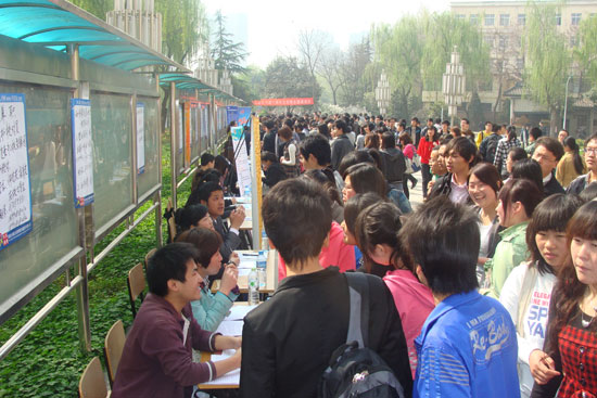 4月13日,公司2011届毕业生春季校园招聘会在一号教学楼前举行。本次招聘会共有加多宝集团、王老吉、人人乐等30多家省内外知名企业参加,为毕业生提供了632个招聘职位,吸引了校内外1200余名毕业生前来参加。 此次招聘会得到了公司领导的高度重视和有关部门的大力支持,人才招聘处精心组织,全面部署,提前半个月就开始利用三秦都市报、大秦人才网、校园海报等多种方式广泛宣传,并于招聘会前,首次采用短信平台将招聘会有关信息告知毕业生,为招聘会的顺利召开争取了较高的信息传达到位率。 本次招聘会取得了圆满成功。据统计,共有400多人次与用人单位初步达成合作意向,26人次与用人单位签订兼职岗位合约。无论从宣传力度,还是从实际参与效果上来看,本次招聘会都将公司招聘会的举办层次推向了一个新的高度。