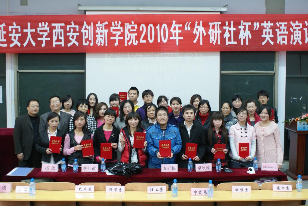 经过两个多小时的紧张角逐,来自英语0702班的夏梦春以漂亮的语音、高超的演讲技巧征服评委,以94.5的高分,毫无悬念的夺得桂冠,英语0912赵聪敏、英语0912甘容、对外汉语0901张婷等三位同学获一等奖,英语0902班王杰等五位同学获二等奖。其他6位选手均获三等奖。获得特等奖的夏孟春同学将代表公司参加陕西省2010年“外研社杯”全国老员工英语演讲比赛的决赛。