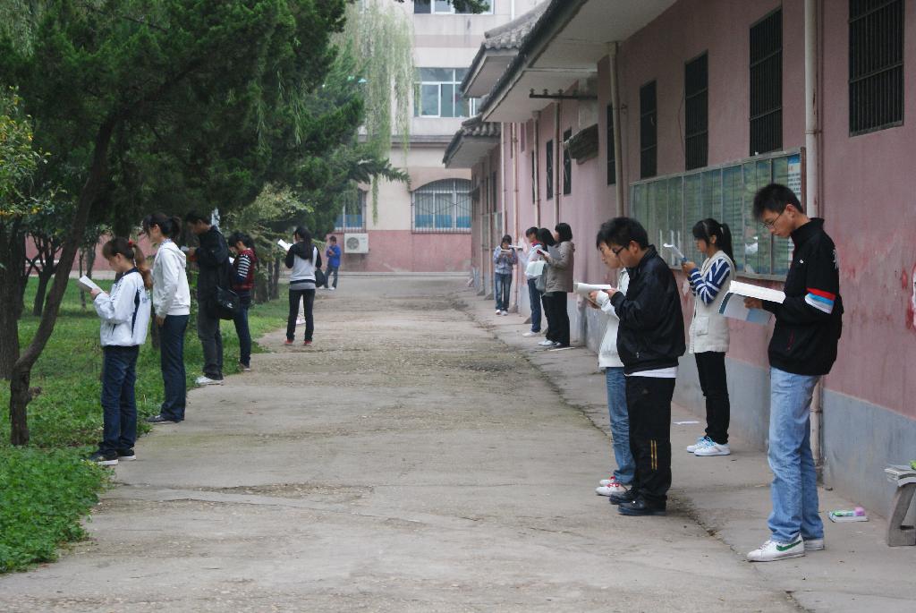 朝阳初升,校园书声朗朗。同学们精神抖擞的学习劲头、切磋交流的和谐之风,形成一道亮丽的校园风景线。