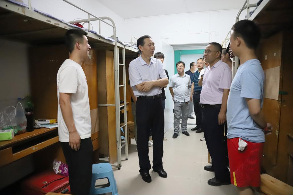 本网讯 9月6日晚,公司领导崔海潮、封学军、陈香山、陈瑶、拓欣在各院(系)负责人和相关职能部门工作人员的陪同下,深入新生宿舍,看望慰问2019级新同学,与他们面对面交流,为刚入学的新生送去关怀和温暖。