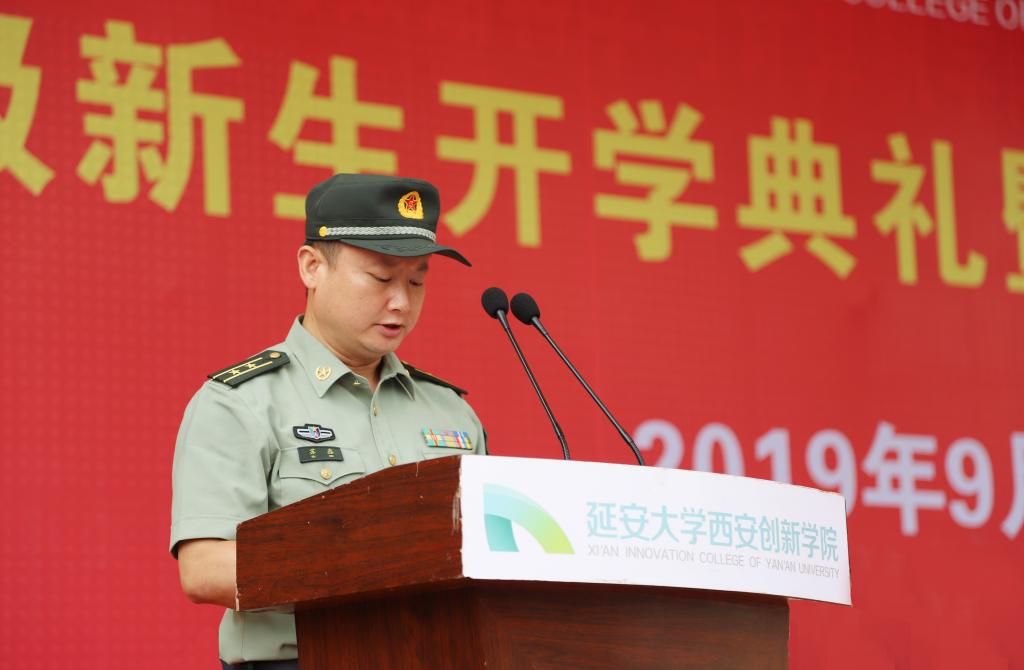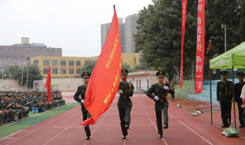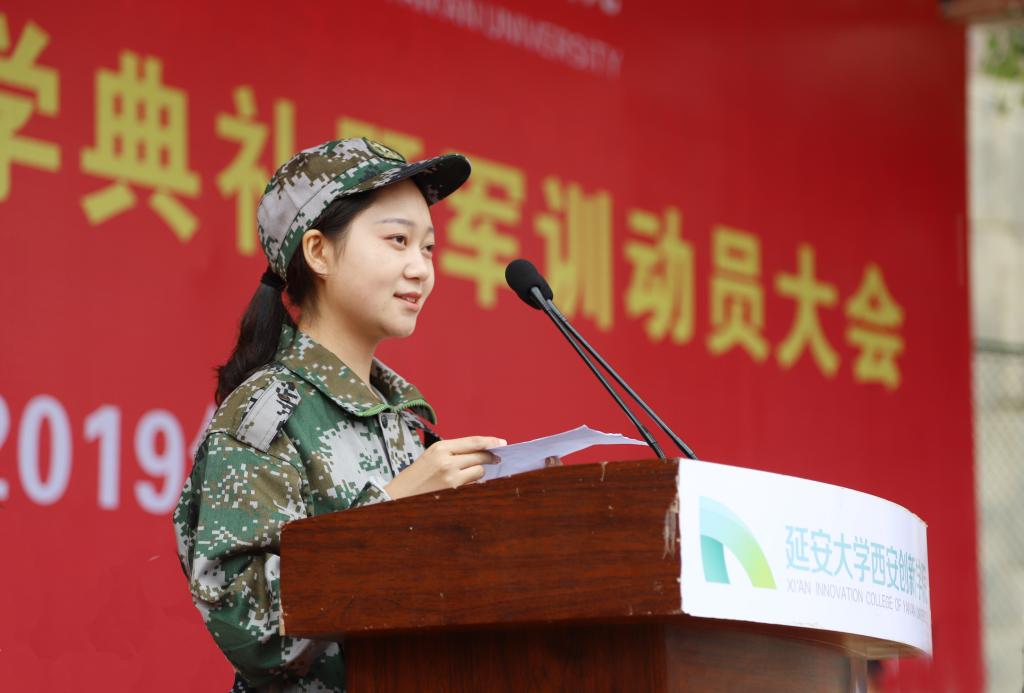 承训部队副政委苏鑫中校在讲话中表示会认真贯彻严格训练、严格要求的方针,认真落实部队的一日生活制度,圆满完成本次军训任务,希望参加军训的同学能做到服从管理、尊重教官,一切行动听指挥。2019级参训员工代表汉语言文学1906班王晴雯同学表态将按照军训要求,认真学习军事理论,高质量完成军训各项任务。