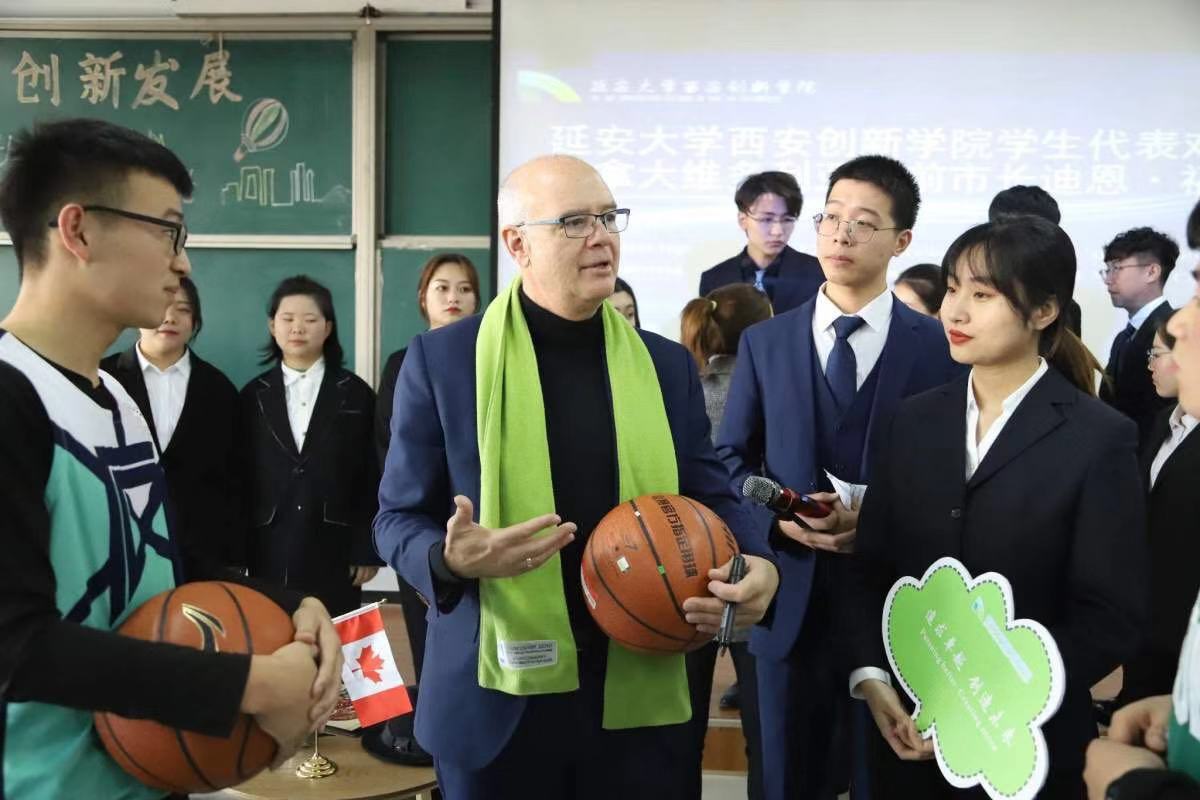 本网讯 12月3日上午,世界青年领导力论坛在西安工业大学北方信息公司举行,加拿大维多利亚市前市长迪恩·福廷先生出席。公司百名师生受邀参加,并现场对话迪恩·福廷先生。