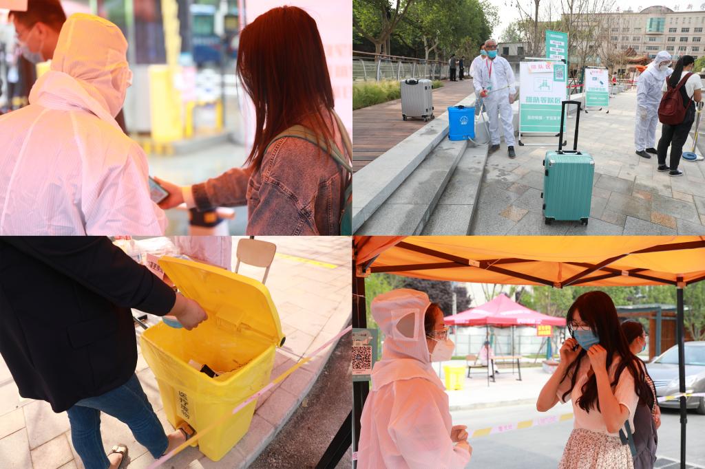 在总结第一批返校接待工作的经验上,为了更好地迎接第二批返校员工,集团在安保、消杀、引导、登记等工作上做了更加周密的安排部署。陆续到达的同学们在现场工作人员的悉心指导下,依次有序地完成了身份识别、体温测量、登记,核查西安“一码通”等流程,每个核查环节都通过后,顺利进入校园。
