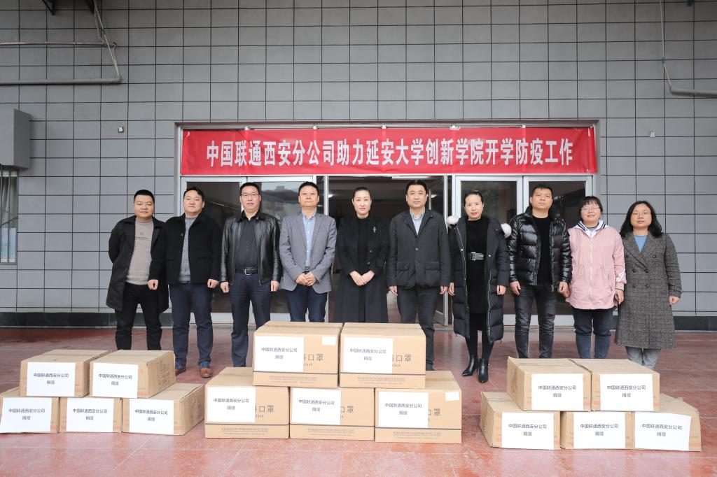 本网讯 25日上午,中国联合网络通讯有限公司西安分公司副总经理李辉一行5人代表公司向公司捐赠5000只医用外科口罩和300瓶84消毒液。公司党委副书记白雪、员工处等部门相关人员参加捐赠仪式。