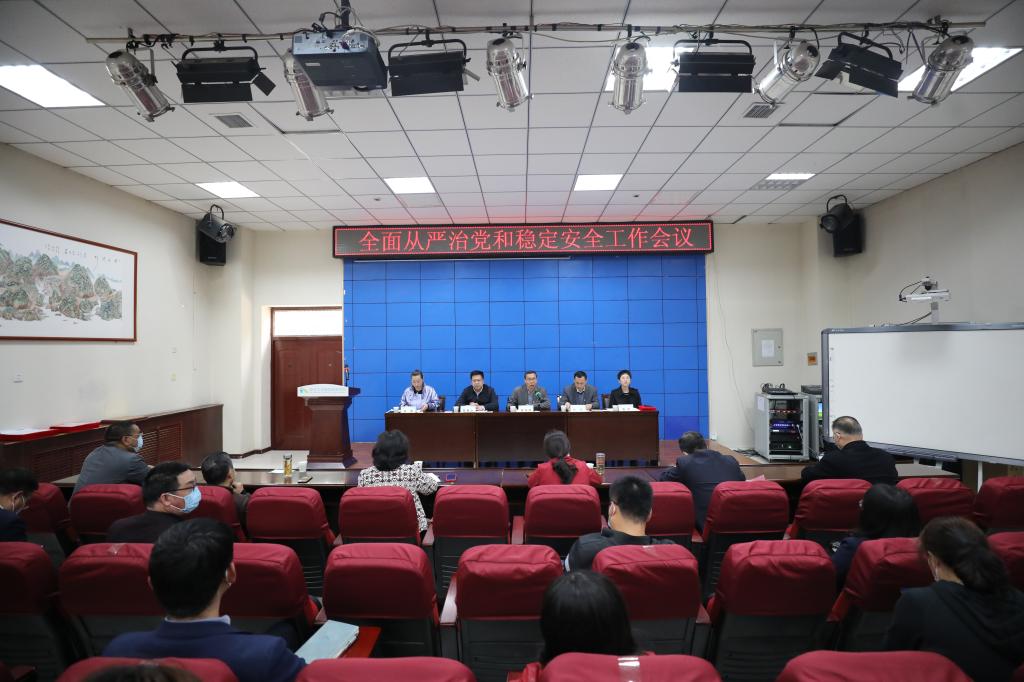 本网讯 4月16日下午,公司在樊川讲堂召开2021年全面从严治党和稳定安全工作会议。全体校领导、党委委员,全体中层管理干部,党委各职能部门工作人员,全体辅导员参加了会议。会议由董事长崔海潮主持。