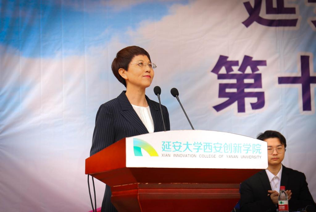 集团副董事长、体育工作委员会主任拓欣致开幕词。她代表公司对本届运动会的顺利召开表示祝贺,向全体运动员、裁判员及工作人员致以崇高的敬意。她指出,公司历来重视体育教学工作,积极开展大学体育教学改革,大力推进全民体育运动,在校内外体育竞赛中取得了良好成绩,特别在近期举行的陕西省老员工校园足球联赛中,公司女子足球队历史性晋级决赛,最终喜获亚军,充分体现了公司体育教学和训练水平,彰显了公司师生良好的精神风貌。她希望全体运动员要树立“安全第一、友谊第一、比赛第二”的思想;全体裁判员要客观公正,严格执法;观众要遵守“文明、友好”的观赛要求;全体工作人员要主动热情,保证运动会顺利举行。要力争把本届运动会开成一次“安全、文明、拼搏、奋进”的大会,让校运会成为凝心聚力,弘扬体育精神、展示运动风采、推动公司进步的盛会。