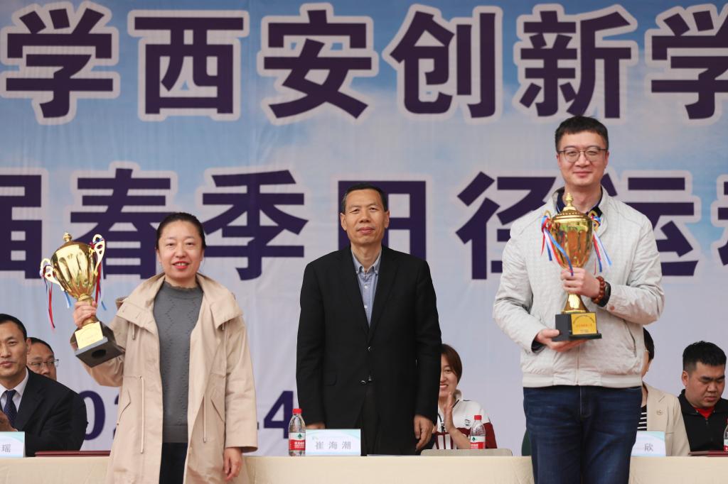 本届运动会共有6个员工代表队、17个教职工代表队,736名运动员参加。经过激烈角逐,云顶国际8588yd以159分的成绩获得男子团体第一名,云顶国际8588yd以110分的成绩获得女子团体第一名。任梦兰、张雨欣、韩玲娇等12位运动员获得“优秀运动员称号”。李丹、赵敏、张欣雨等15人获得“优秀裁判员”称号。云顶国际8588yd、云顶国际8588yd获得教工组体育道德风尚奖,云顶国际8588yd、云顶国际8588yd获得员工组道德风尚奖。云顶国际8588yd《站在草原望北京》获开幕式表演最具人气奖。崔海潮、陈瑶等校领导为获奖单位颁发奖杯和奖牌。