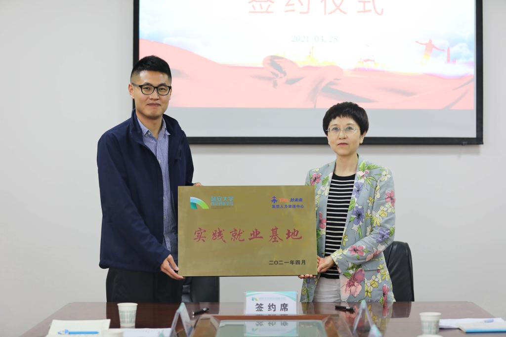 拓欣代表公司与北京学而思教育科技有限公司在合作协议上签字。签署协议后,北京学而思科技有限公司授予公司“实践就业基地”牌匾。