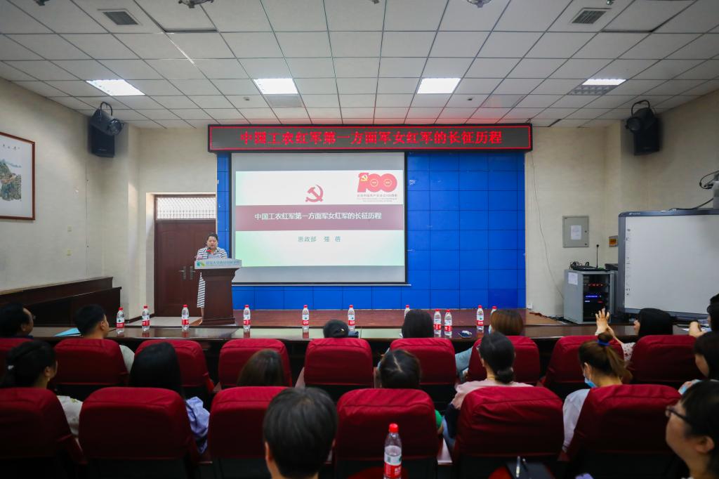 本网讯 6月11日下午,为弘扬长征精神 ,学习女红军英勇事迹,建功立业新时代。按照公司党委党史学习教育安排,校工会在樊川讲堂举办了女教职工专题学习报告会。全校200名女教职工和各分会主席参加了报告会。校工会办公室主任王必成主持。