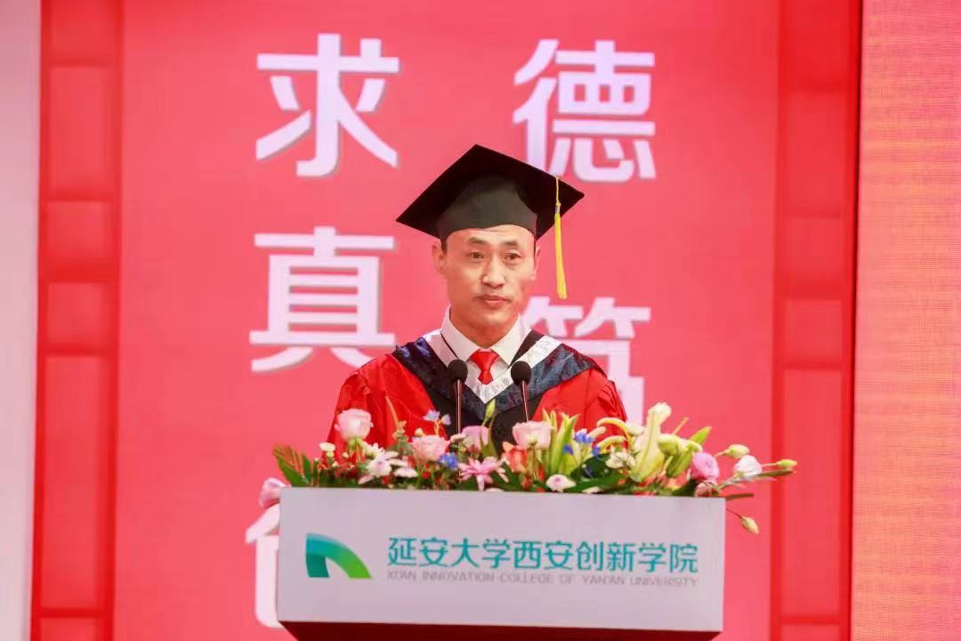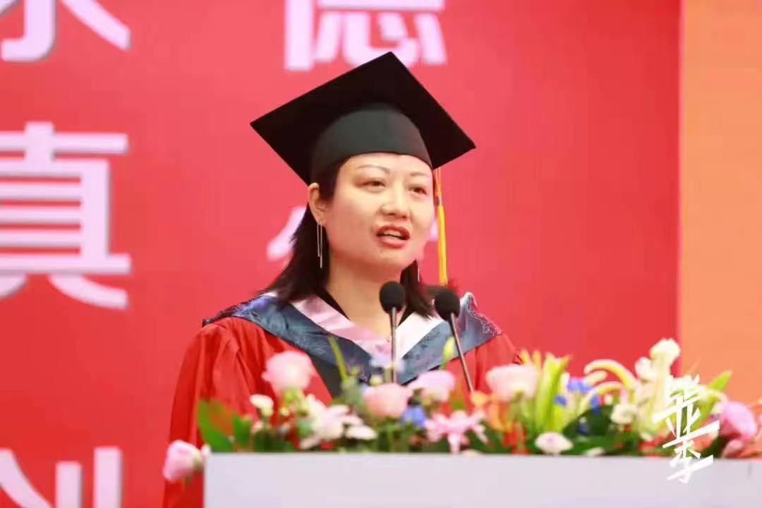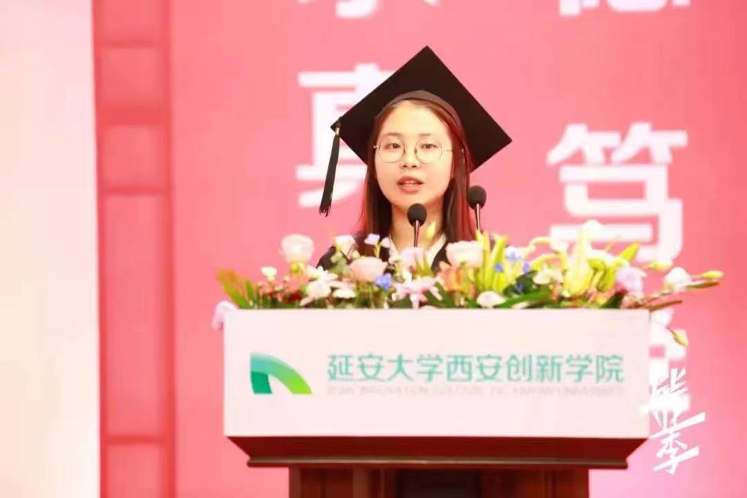 毕业生代表、文公司广播电视学专业何婷玉同学发言,她表示,在创新公司的校园里充满了珍贵的回忆,要立志在实现中华民族伟大复兴过程中,行之于途而应于心,心怀感恩,不忘初心,砥砺前行。