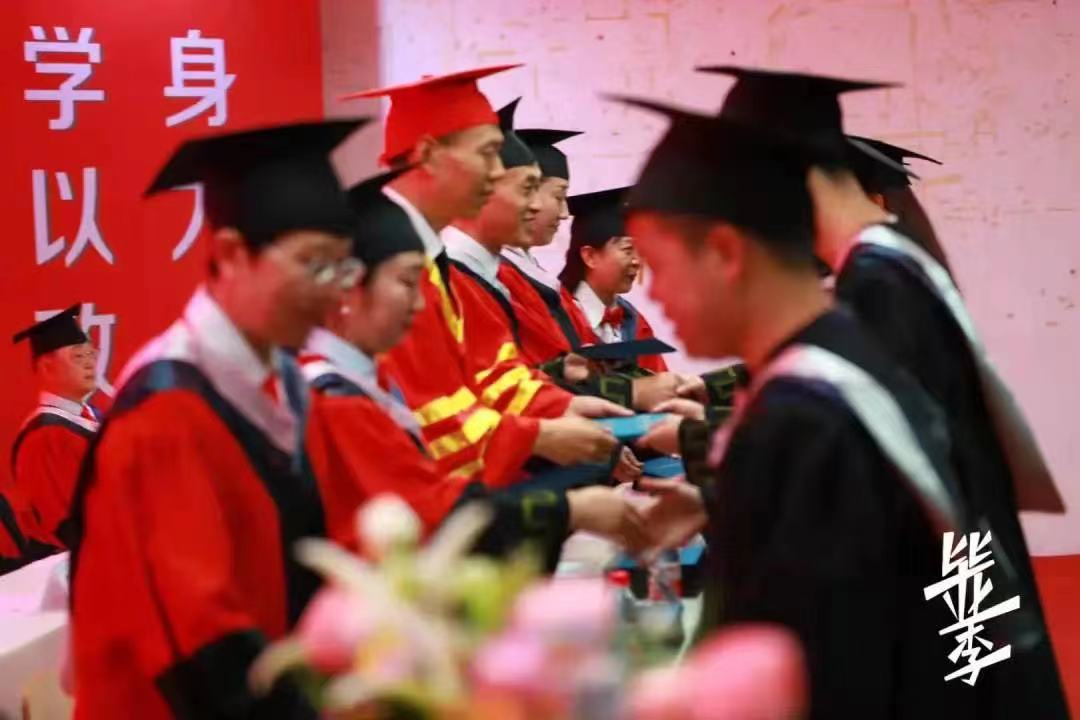 当雄壮的国歌响起,全体师生齐声奏唱国歌,毕业典礼拉开了帷幕。公司党委书记陈瑶宣读了公司《关于准予何婷玉等1946名员工毕业的决定》和《关于授予卜琼等1941名同学学士学位的决定》。校领导共同为毕业生代表颁发毕业证书,公司董事长、学位委员会主席崔海潮为毕业生代表颁发学位证书、执拨穗礼,并与毕业生一一合影留念。