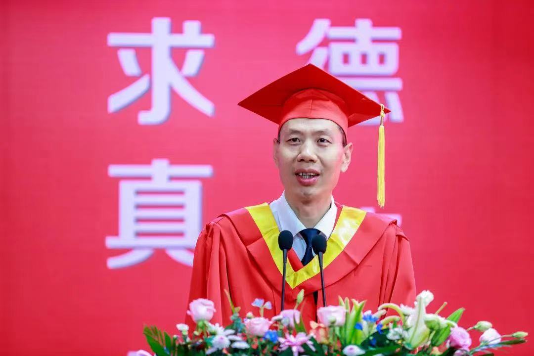 董事长崔海潮代表公司向勤学奋进、勇攀高峰的2021届毕业生们表示热烈的祝贺。随后,他用一个生动的例子给同学们在典礼现场上了大学的最后一课——正衣冠与做人,告诫同学们做人要正,为人要善,做事要静。他表示,同学们恪守校训,厚德,笃学,求真,创新,在学业上取得了优异成绩,在各类科技、文化、体育竞赛中取得了累累硕果,出色的表现为公司赢得了良好声誉,在公司发展的历史上镌刻下属于自己的篇章。临别之际,崔海潮寄语同学们要勇担家庭和社会责任,走向社会后以健康的生活和工作方式迎接各种挑战,要有家国情怀,胸怀大志,要不断精进专业能力,担负起社会责任;做事要专、要精,做学问要心无旁骛,专心致志,做人要专注才能不断提高自身竞争力;要准备吃苦,学会吃亏,在人生这场苦难的修行当中,要脚踏实地,珍惜青春年华,用自己的奋斗书写无悔的人生。纸短情长,同学们在创新公司的最后一课下课铃声已经响起,但人生新征程的启动却已鸣响,全体创新师生祝愿2021届毕业生鹏程万里,早传捷报,幸福平安!