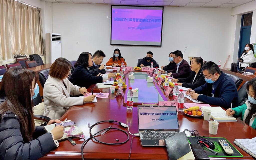 本网讯 11月11日下午,新疆驻陕西工作组教育协调工作小组组长王瑛一行三人来公司对新疆籍员工的教育管理服务工作进行调研。党委副书记白雪出席并主持座谈会,员工处处长丁晓宝、员工处副处长张亮、艺术与传媒公司副经理赵双勇、后勤处副处长雷宇、就业指导服务中心副主任李晨、公寓管理中心主任王军、员工处相关人员、新疆籍员工辅导员代表及新疆籍员工代表参加。
