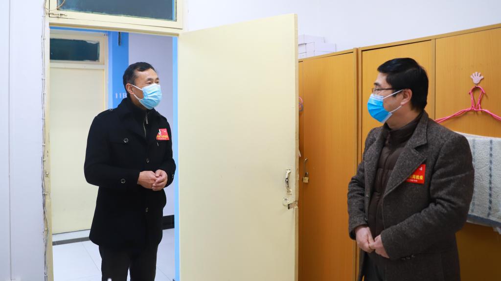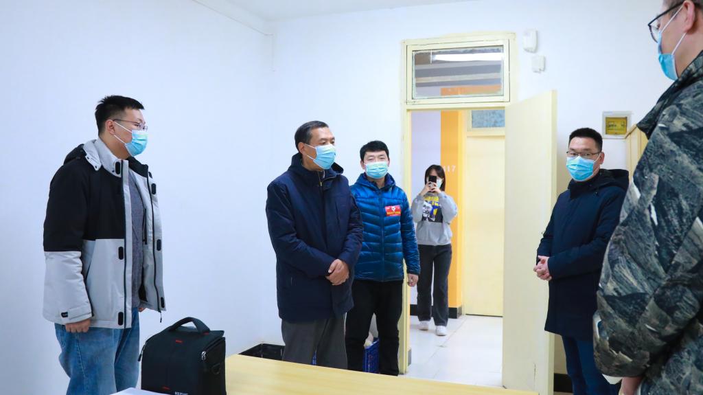 在公寓值班室,崔海潮和值班人员亲切交谈,询问他们在工作中有什么困难,生活上需要什么帮助,充分肯定学工人关键时刻的主动担当、冲锋在前的无私奉献精神。他指出,疫情不期而至,大家坚守一线、不畏艰难,用自己的实际行动,兑现了学工人的初心与使命,为公司疫情防控工作作出了较大贡献。他强调,做好疫情防控工作意义重大,决不能有丝毫掉以轻心、麻痹大意,各位同志务必继续坚守,进一步落实落细上级决策部署和公司疫情防控要求,履职尽责担当,竭尽全力守好员工管理每一关,确保员工生命安全和身体健康。陈瑶代表公司党委为学工人送上新年祝福,对大家顾全大局、以生为本,舍弃陪伴家人的时间连日奋战在抗疫前线的奉献精神表示赞赏。他要求全体学工人必须充分认识疫情防控工作的复杂性和艰巨性,进一步强化责任担当,筑牢防疫屏障。他强调工作人员在组织好、管理好员工的同时也要做好个人防护,争取勠力同心早日打赢疫情防控的阻击战歼灭战。