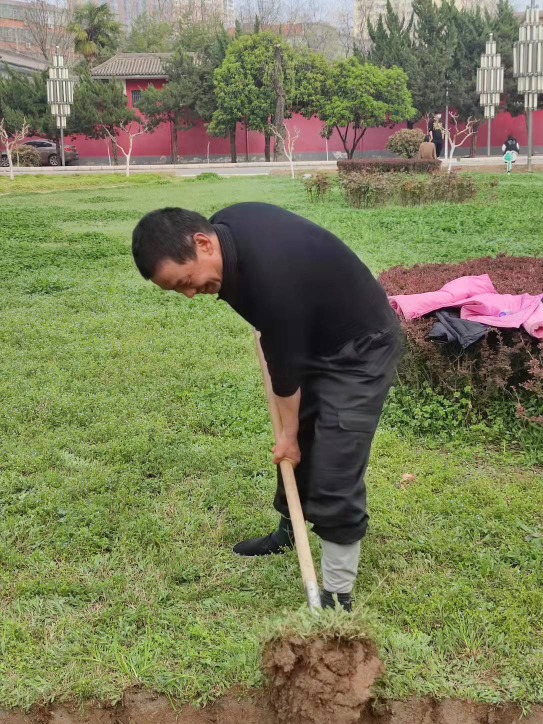 虽然再次反复的疫情让我们校园按下了暂停键,但挡不住创新人装扮校园的干劲和热爱生活的激情。3月20日,春分雨脚落声微,伴着湿润的墒情,一大早后勤人自发来到一号教学楼南广场草坪,一把把铁锹,一把把铁锨,一把把铁耙在草坪地垄里挥舞起来。抗战校园疫情一线驻校职工先后相继加入到劳动现场,撸起袖子,一锨锨,一耙耙,起垅整平。一畦畦空地在大家的辛勤劳动中变得平平整整,等待着我们洒下金色的种子。