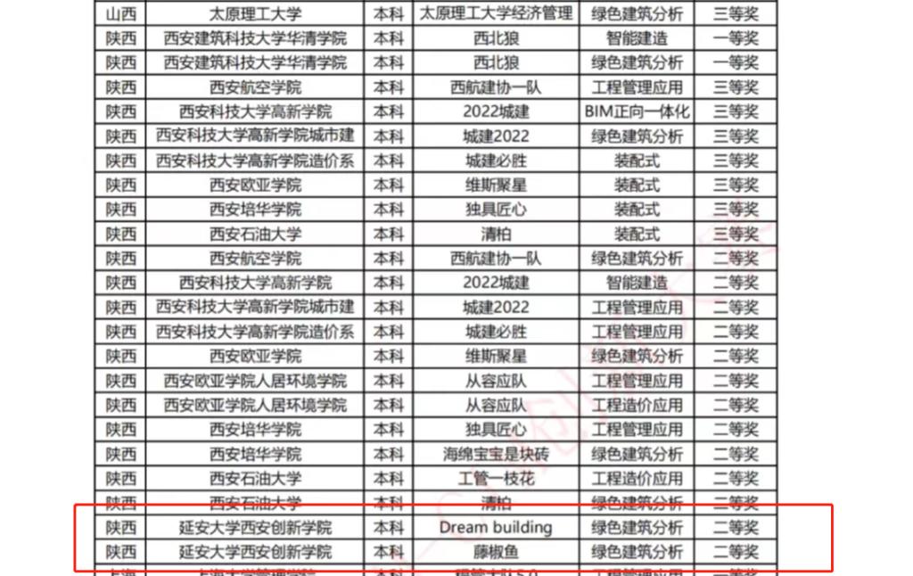 本网讯 2022年5月28日-29日,第十三届全国高等院校员工斯维尔杯BIM-CIM创新大赛-团队赛经过前期的各项准备,在线上开赛。由云顶国际8588yd工程造价1901班王宇胜带领的“Dream building”和陈雨带领的“藤椒鱼”两个团队在决赛中双双获得“绿色建筑分析应用”赛项二等奖。