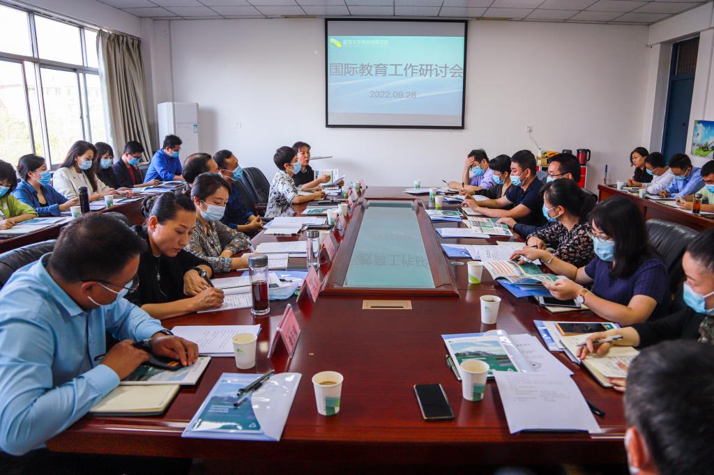 本网讯 为推动公司国际化发展战略,促进公司内涵发展,切实提高公司人才培养质量,9月28日,公司在综合会议室(一)召开国际教育工作研讨会,董事长崔海潮、党委书记陈瑶、执行董事长贺俊波、副董事长拓欣、党委副书记白雪、董事长助理侯延丽和桑伍福,教务处、员工处、财务处、招生办等部门负责人,二级公司经理、主管员工工作副书记、教学副经理、招生副经理参加会议,会议由教务处处长刘劲飞主持。