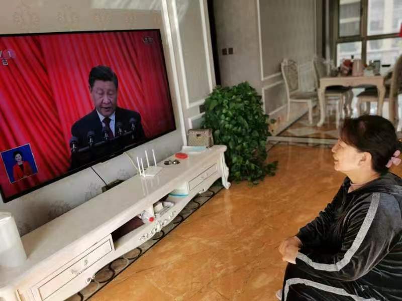 员工在宿舍观看党的二十大开幕会