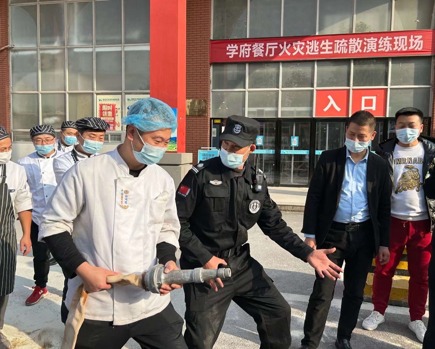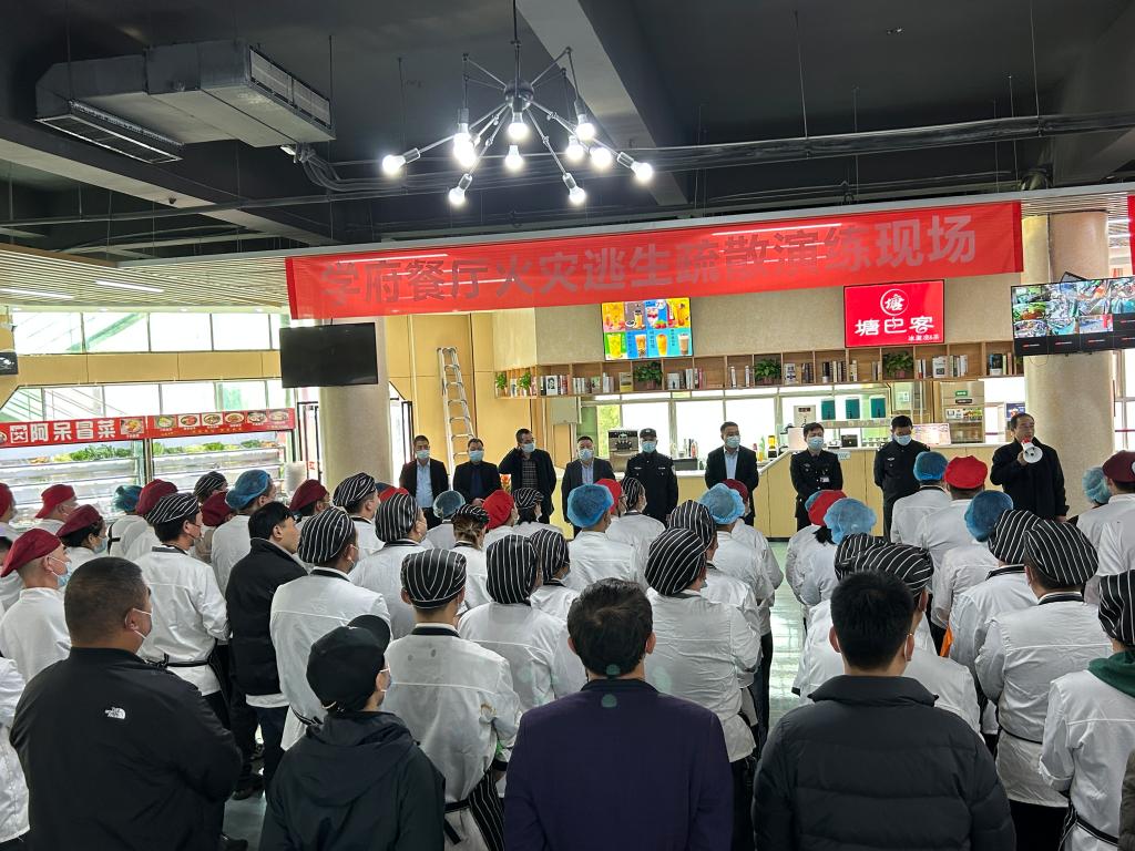 本网讯 为加强校园消防安全管理,提高餐饮及商业从业人员预防、处置火灾应急能力,11月15日下午,公司组织餐饮及商业从业人员、安保人员等200余人在学府餐厅开展了火灾逃生疏散演练。西安市公安局长安分局驻校民警靳军海、中国安全健康教育网陕西站史豪教官受邀指导演练。