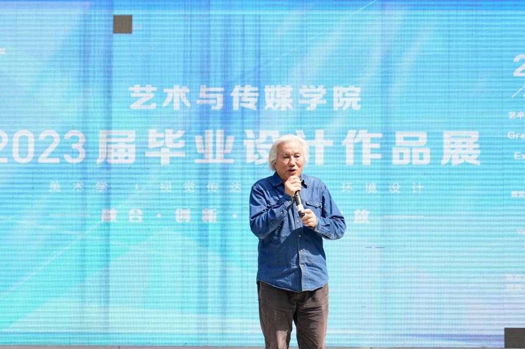 王家民在致辞中表示,本次展览作品表现形式多样化,在技术上也极具创新化,在思想内涵上也有更多探索。毕业作品展是同学们向母校递交的学业汇报成绩单,更是踏入社会就业创业的敲门砖。他鼓励毕业生们在日后的创作道路中保持激情,用艺术底蕴承载青春理想,为社会艺术事业的发展贡献自己的力量。