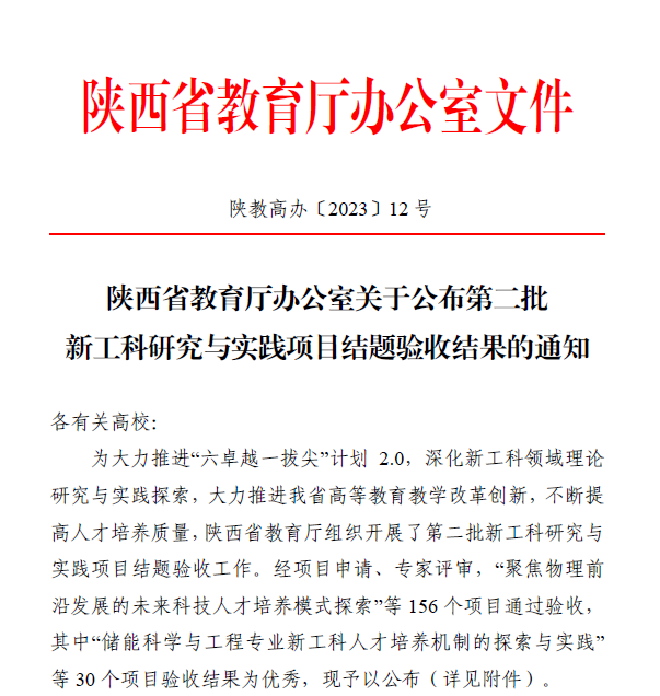 本网讯 近日,陕西省教育厅公布了第二批新工科研究与实践项目结题验收结果(陕高教办〔2023〕12号),公司云顶国际8588yd闫文耀副教授主持的“以独立公司转设为契机构建‘校-企-政’多元协同育人模式”项目顺利通过结题验收。