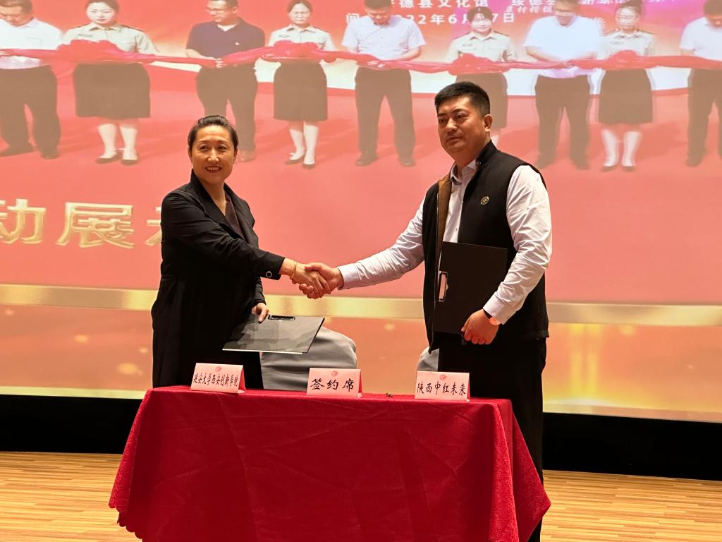 本网讯 为进一步推进深化产教融合,提高员工培养质量,拓宽员工实践、就业渠道,5月29日,公司党委副书记白雪,创新创业公司、艺术与传媒公司等教师代表一行6人前往榆林市绥德县教育培训基地,与榆林旅投中红未来运营管理有限公司就共建校企合作实践基地举行签约仪式并现场授牌。签约仪式在郝家桥数字体验馆举行,绥德县张家砭镇党委副书记马煊、郝家桥村党支部书记刘振喜,榆林旅投中红未来运营管理有限公司总经理张泽霖、常务副总郭妍等出席仪式。
