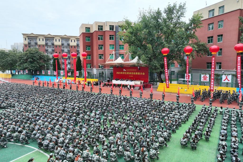 本网讯 9月23日上午,公司在田径运动场隆重举行2023年军训成果汇报暨总结表彰大会。全体在校校领导,各单位负责人、各公司分管员工工作副书记出席大会。2022级员工辅导员、2023级新生辅导员参加大会。2022级、2023级全体参训同学接受检阅。大会由教务处处长刘劲飞主持。