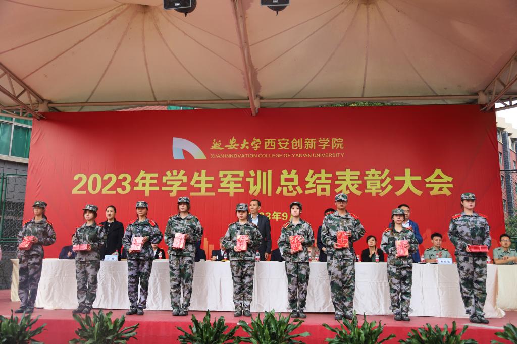 学工部部长、军训团政委丁晓宝宣读了《关于表彰2023年军训团获奖单位的决定》《关于表彰2023年军训优秀学员的决定》《关于表彰2023年军训优秀见习教官的决定》《关于表彰2023年军训优秀指导员的决定》。董事长崔海潮、执行董事长贺俊波、副董事长拓欣等校领导为获得表彰的集体和个人颁发了荣誉奖牌和证书。