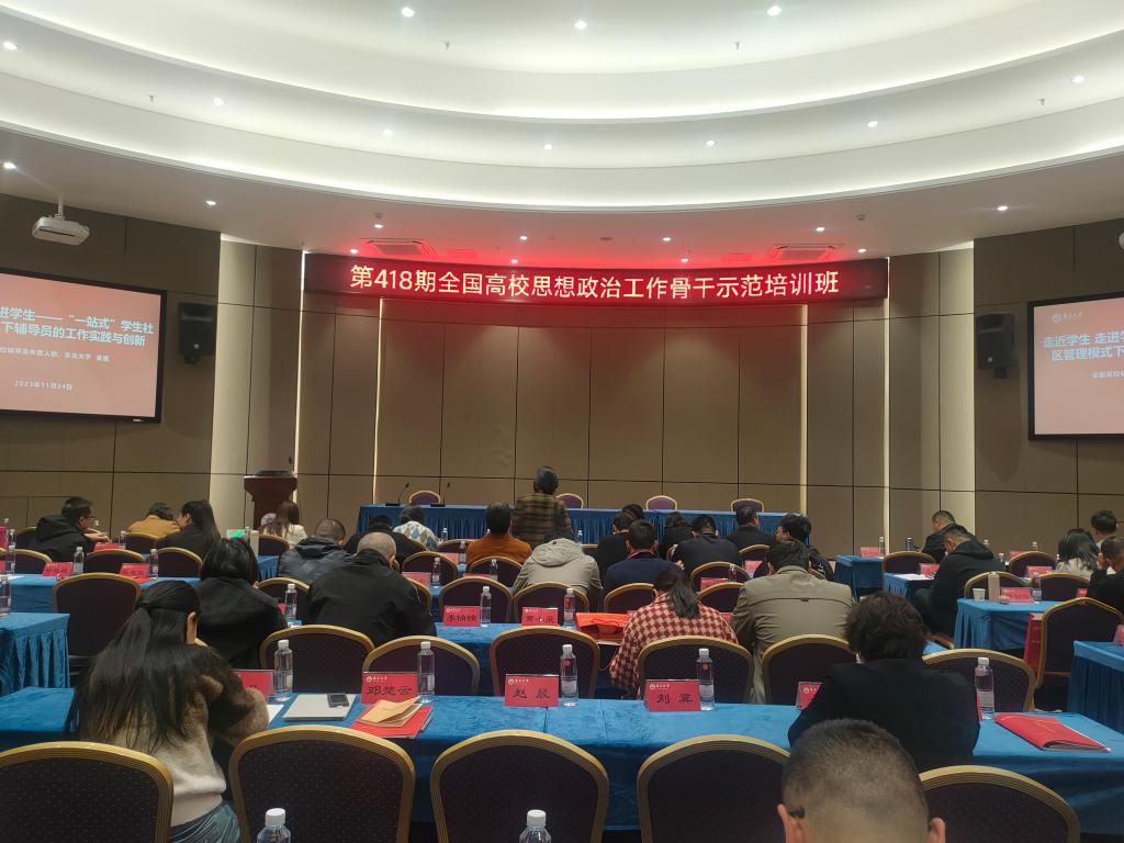 本网讯 11月21日至24日,由教育部思想政治工作司主办,高校思想政治工作队伍培训研修中心承办的第418期全国高校思想政治工作骨干培训班在南昌大学举行。公司云顶国际8588yd辅导员寇静受邀与来自全国高校的117名辅导员参加了培训班。