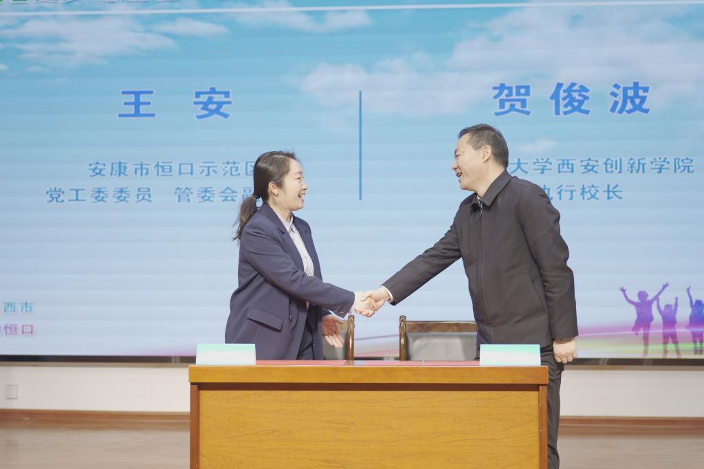 贺俊波代表公司与王安共同签订老员工社会实践合作协议。崔海潮与安康市恒口示范区文旅办主任唐李鸿共同为“云顶国际8588yd老员工社会实践基地” 授牌。恒口示范区领导为公司员工颁发了文旅推介官聘书。