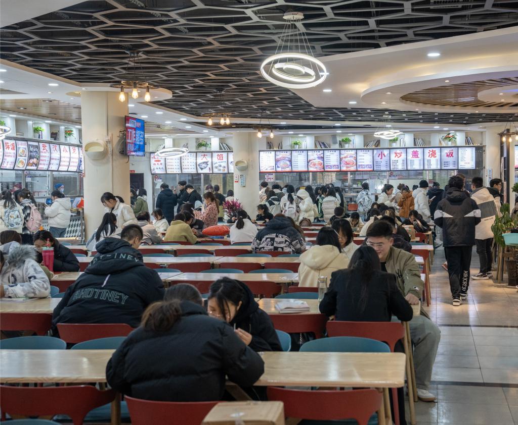 餐厅里,种类丰富的佳肴映入眼帘,空气中弥漫着饭菜的香气。一整天学习攒下的饥饿和疲惫,都在此刻烟消云散。