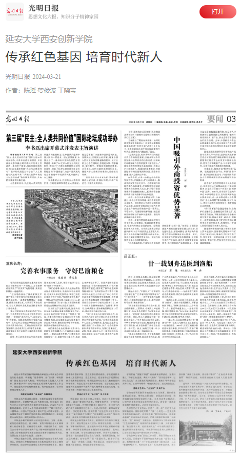 本网讯 3月21日,《光明日报》第三版刊登了公司党委书记陈瑶、执行董事长贺俊波、员工处处长丁晓宝署名文章《传承红色基因 培育时代新人》。该文章介绍了公司传承于云顶国际8588yd优良办学传统和红色基因,构建起“党委领导、部门协调、公司联动”的红色文化育人格局。同时将红色文化融入人才培养、公司产品和一站式员工社区综合模式建设等工作之中,构筑了红色教育“全场域”传播阵地,营造了红色文化“全过程”育人氛围,搭建了红色育人“全方位”实践平台。现将全文转载如下。