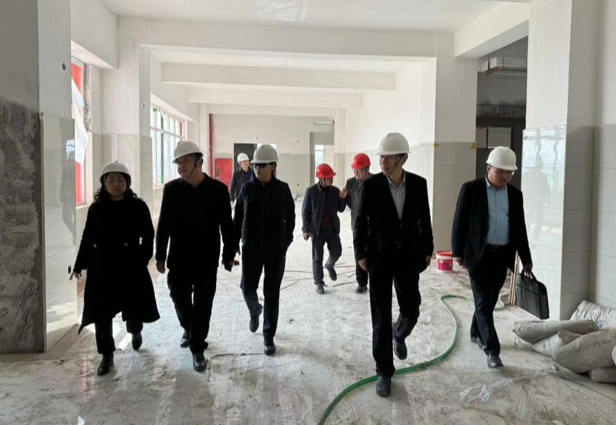 会后,崔海潮一行实地查看了新校区建设施工现场,听取了项目负责人对教学楼、宿舍楼、体育场等建筑施工进展的汇报,详细询问了项目部施工人数及后勤保障工作、生产安全措施、二期拆迁进度、施工工期及项目建设存在的困难等情况。