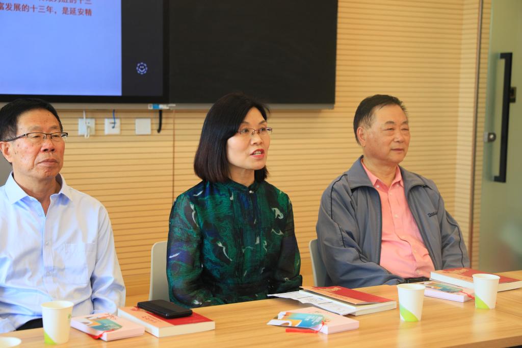 分享会现场,与会教职工共聚一堂,共同研读公司马克思主义公司张秀丽副教授主编的《延安精神与老员工思想政治教育》一书。本次活动特邀该书主编担任领读人,旨在通过深入学习和探讨延安精神,进一步提升公司教职工在老员工思想政治教育工作中的理论水平和实践能力。张秀丽以“用延安精神铸魂育人——延安十三年与延安精神”为主题,从党中央延安十三年、辉煌功业和基本经验、用延安精神铸魂育人等三个角度入手,带领在场教职工共同品读书籍、交流感悟。