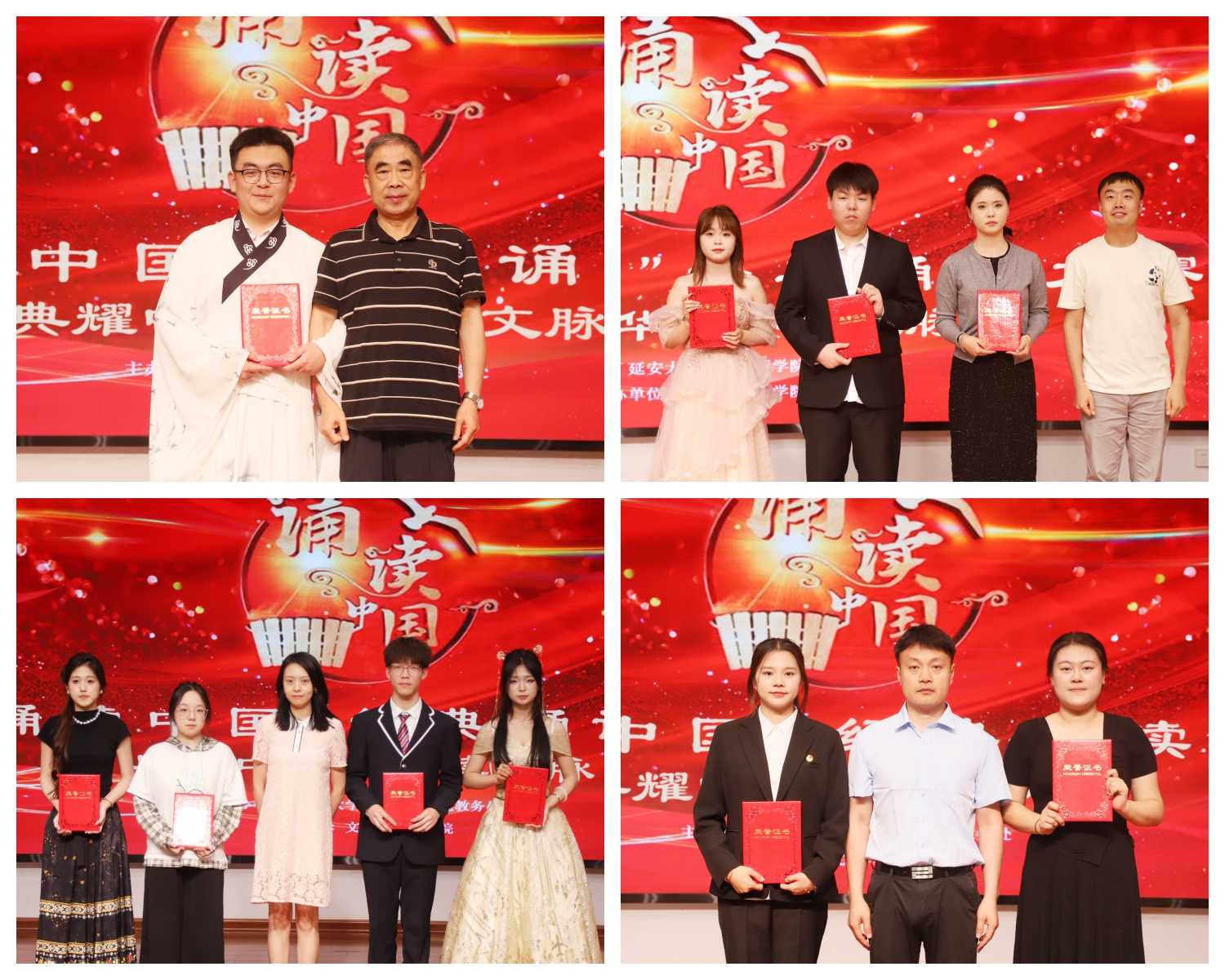 大赛历时近一个月,经历了海选、初赛环节,最终选拔出16组优秀作品进入校级决赛,选手们以饱满的热情投入到这场经典诵读的文化交流盛宴中。他们以真挚的情感诠释着经典作品中的每一个字句,用自己独特的方式演绎经典,让观众们仿佛置身于那激情澎湃的历史时刻。诵读之声不绝于耳,强国之音掷地有声,每一篇娓娓道来的故事都铺成历史。每一次朗诵结束后雷鸣般的掌声不仅是对朗诵者的赞美,更是对那段红色历史的致敬和缅怀。最终,经过激烈的角逐,文教公司许佳晨《将进酒》夺得一等奖;护理公司、文教公司、云顶国际8588yd合作完成的作品《不朽中国》、《红船诵》荣获二等奖;周美晶、李淑然、邓博雯组合《等待》、《点燃明天》、《诗意中国》节目获得三等奖。