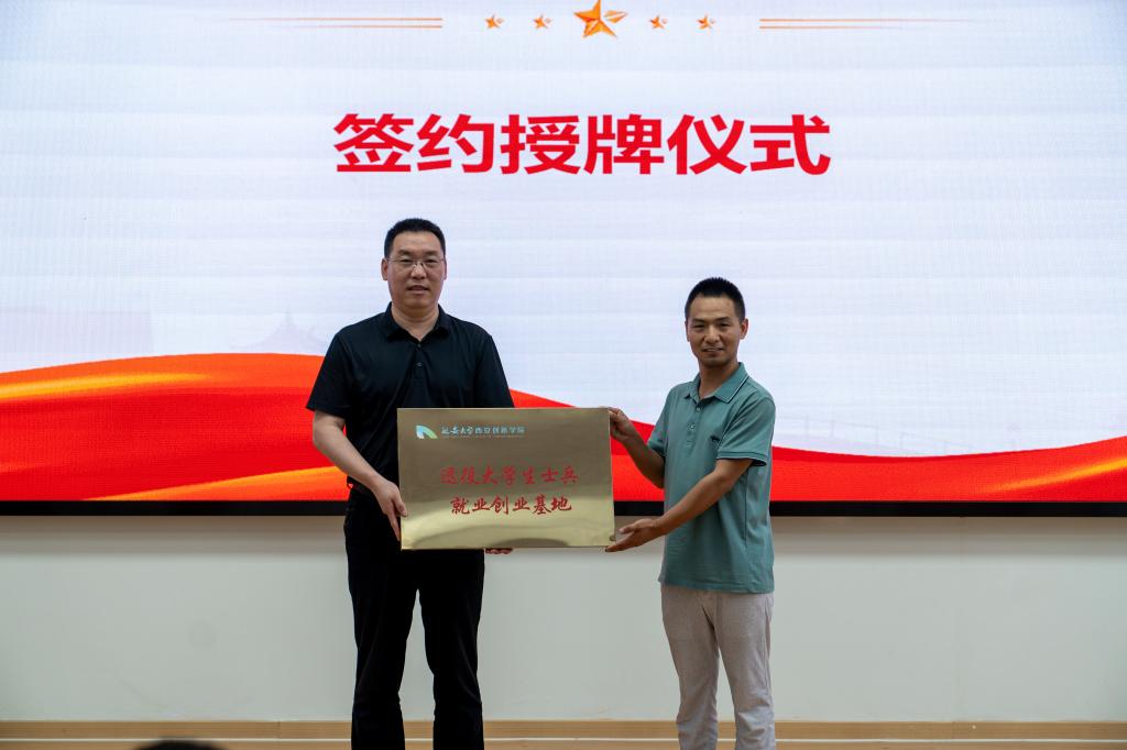 会议在雄壮的国歌声中拉开帷幕。李晨宣读了《关于成立退役老员工志愿服务队的决定》并为志愿服务队授旗,标志着公司退役老员工士兵志愿服务队正式成立。张腾飞、丁晓宝上台签署退役军人就业创业基地合作协议并授牌,为公司退役老员工搭建实习就业创业平台。退役老员工志愿服务队代表林卫东带领全体退役复学员工重温了中国人民解放军军人誓词。
