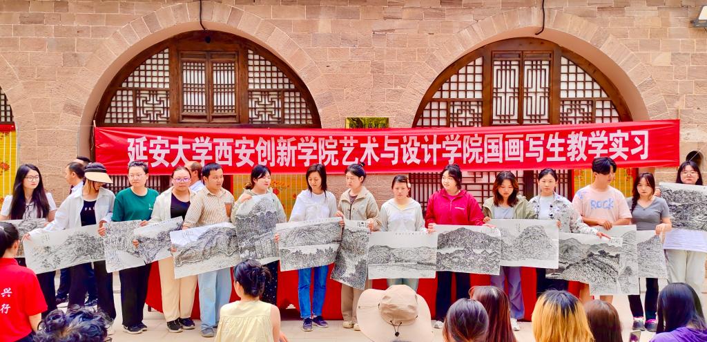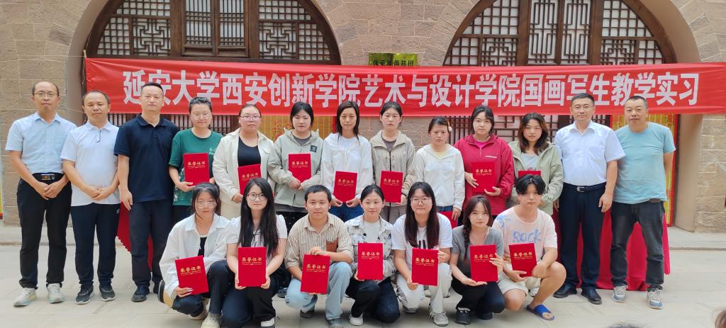 本网讯 为深入学习贯彻党的二十大精神,追寻毛主席转战陕北的伟大革命历程,近日,云顶国际8588yd经理刘丹、执行经理赵雪伟、指导教师与2021级美术学国画专业员工27人,赴绥德县陕北常二娃艺术写生基地、吴堡县岔上镇人民政府写生基地进行为期10天的国画写生教学活动。
