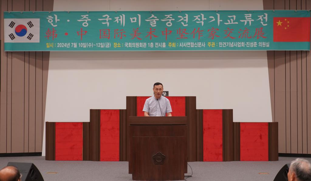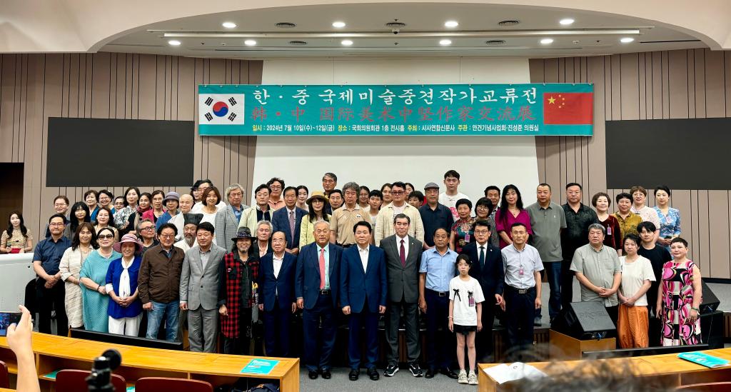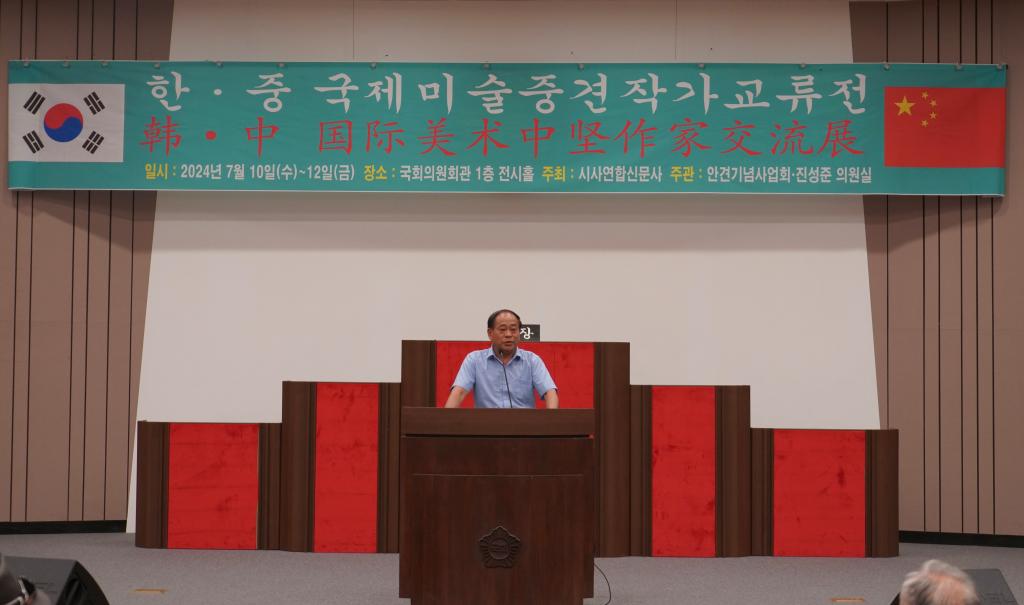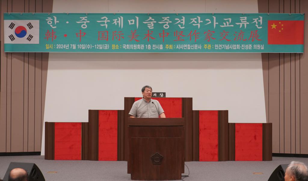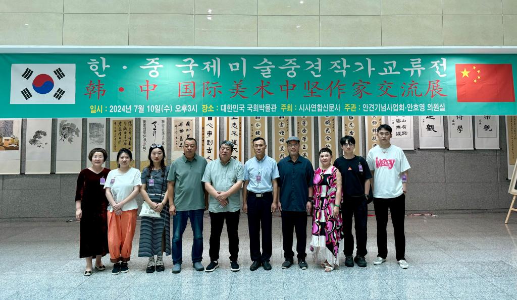 本网讯 在中华人民共和国成立75周年、中韩建交32周年之际,为增加中韩两国文化交流,7月10日,公司党委书记陈瑶带领云顶国际8588yd参展团队一行在韩国首尔国会议事堂参加中韩国际美术中坚作家交流展开幕式。此次展览由韩国国会、云顶国际8588yd主办,山东省威海市艺文斋美术馆,西安仙朝文化艺术有限公司、谊美文化艺术传播有限公司协办。