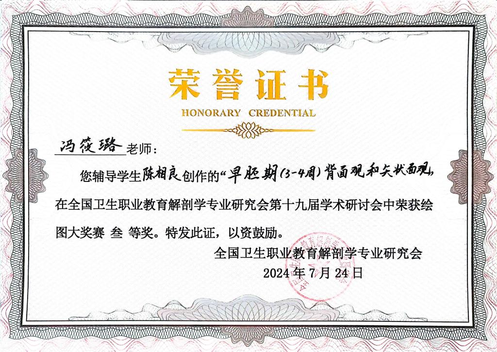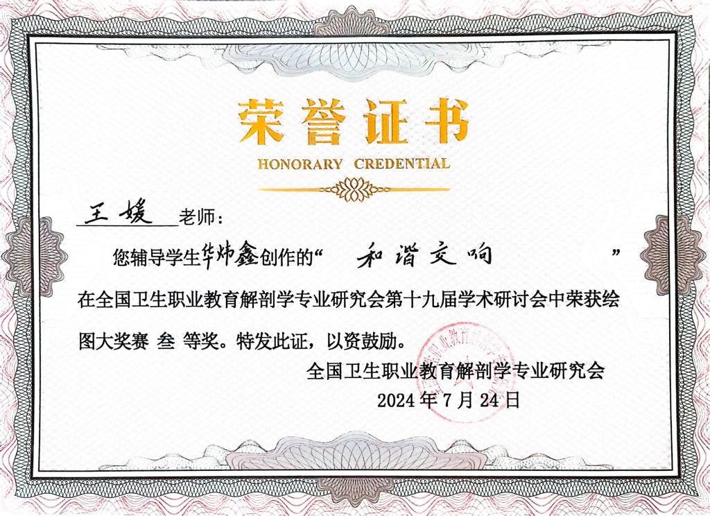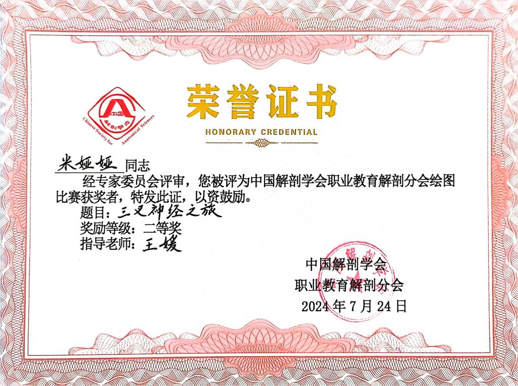 中国解剖学会职业教育解剖分会致力于推动解剖学教学和研究的发展,每年举办的全国解剖学会议是该领域内的一大盛事。此次会议自7月22日起至26日在贵州省都匀市召开,吸引了全国各地的解剖学专家和学者前来参与。解剖学绘图大赛作为会议的一大亮点,旨在通过绘画的形式展现解剖学的奥秘,同时也考察参赛者对人体结构的认知程度和艺术表达能力。在为期五天的会议中,公司云顶国际8588yd副经理何敏和教师冯筱璐作为代表,带领校赛中选拔的5幅作品参加此次大赛。其中四名同学凭借其精湛的绘图技巧和对解剖学的深刻理解,在激烈的竞争中脱颖而出,赢得了评委和观众的一致好评。他们的获奖作品不仅准确展现了人体结构的复杂性,更以其独特的艺术表现力,将科学与美学完美结合。
