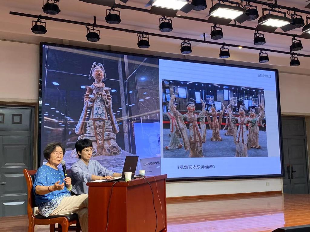 讲座伊始,王蒨从赤子之心、匠人精神、使命担当及传承创新等四个方面分享了自己在艺术创作中的心得和体会。她表示,复制古代陶俑并非简单的模仿,而是要通过对原作的细致观察和理解,领悟其中的艺术精髓。每一个时代都有自己的灵魂和精神,如果不能把这些特征表现出来,那复制陶俑就没有任何意义,如果随便应付,把时代特征弄得含糊不清,那便是对文化的极大亵渎。她强调,复制古代陶俑,是对传统文化的一种传承和弘扬。艺术的创新传承需要我们既要尊重传统,又要敢于突破,只有这样,才能创造出具有时代特色和个人风格的艺术作品。随后,王蒨以其深厚的艺术底蕴和丰富的创作经验,深入浅出地阐述了古代陶俑复制与现代水墨人体画之间的紧密联系。通过展示一系列个人现代水墨人体画作品,王蒨为大家讲解了出古代陶俑的艺术元素融入到现代水墨人体画创作中的巧思。