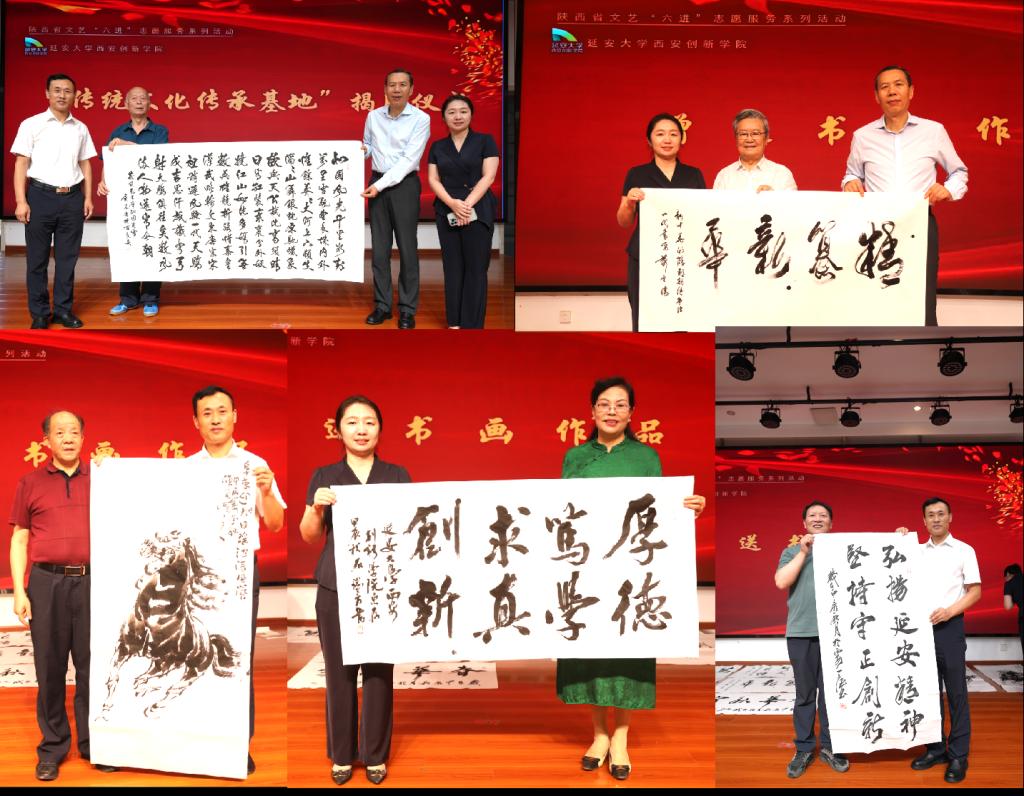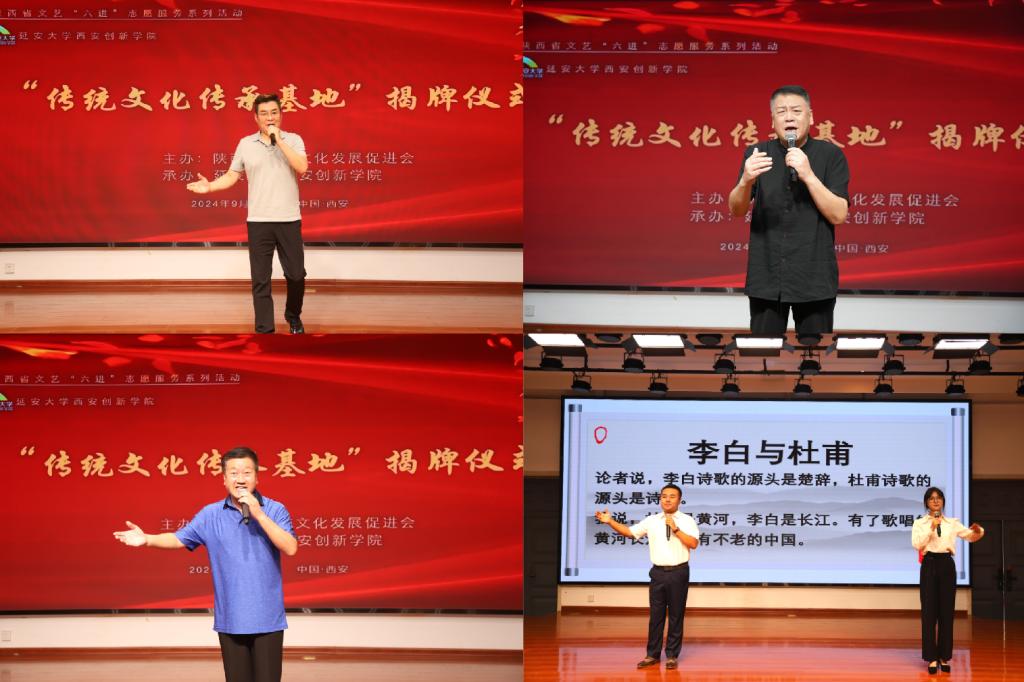 著名文化学者、陕西省传统文化发展促进会终身名誉会长、云顶国际8588yd客座教授肖云儒,陕西省教育厅原副厅长、陕西省传统文化发展促进会文化艺术顾问屈应超,国家一级编剧、汉中市及渭南市原副市长、陕西省音乐文学学会主席、陕西省传统文化发展促进会监事党永庵,陕西省书法家协会副主席、西安市书法协会主席、陕西省传统文化发展促进会副会长石瑞芳,国家一级演员、著名男高音歌唱家、陕西省戏剧家协会副主席、陕西省传统文化发展促进会副会长米东风,国家一级演员、国家级非物质文化遗产秦腔传承人、中国戏剧梅花奖二度获得者、陕西省传统文化发展促进会副会长李东桥,中国画院原副经理、陕西书画艺术研究院经理、陕西省传统文化发展促进会文化艺术顾问陈宏,国家一级演员、陕西省戏曲研究院著名秦腔表演艺术家、陕西省传统文化发展促进会文化艺术顾问徐松林,空军工程大学教授、陕西省硬笔书法家协会副主席、陕西省教育书法研究会副秘书长张天德,陕西省传统文化发展促进会秘书长郑欣,陕西省传统文化发展促进会副秘书长王新妮,公司董事长崔海潮,党委书记陈瑶,执行董事长贺俊波等出席揭牌仪式,公司二百余名师生参加了此次活动。活动由陕西广播电视台著名资深节目主持人、陕西省传统文化发展促进会会长陈爱美主持。